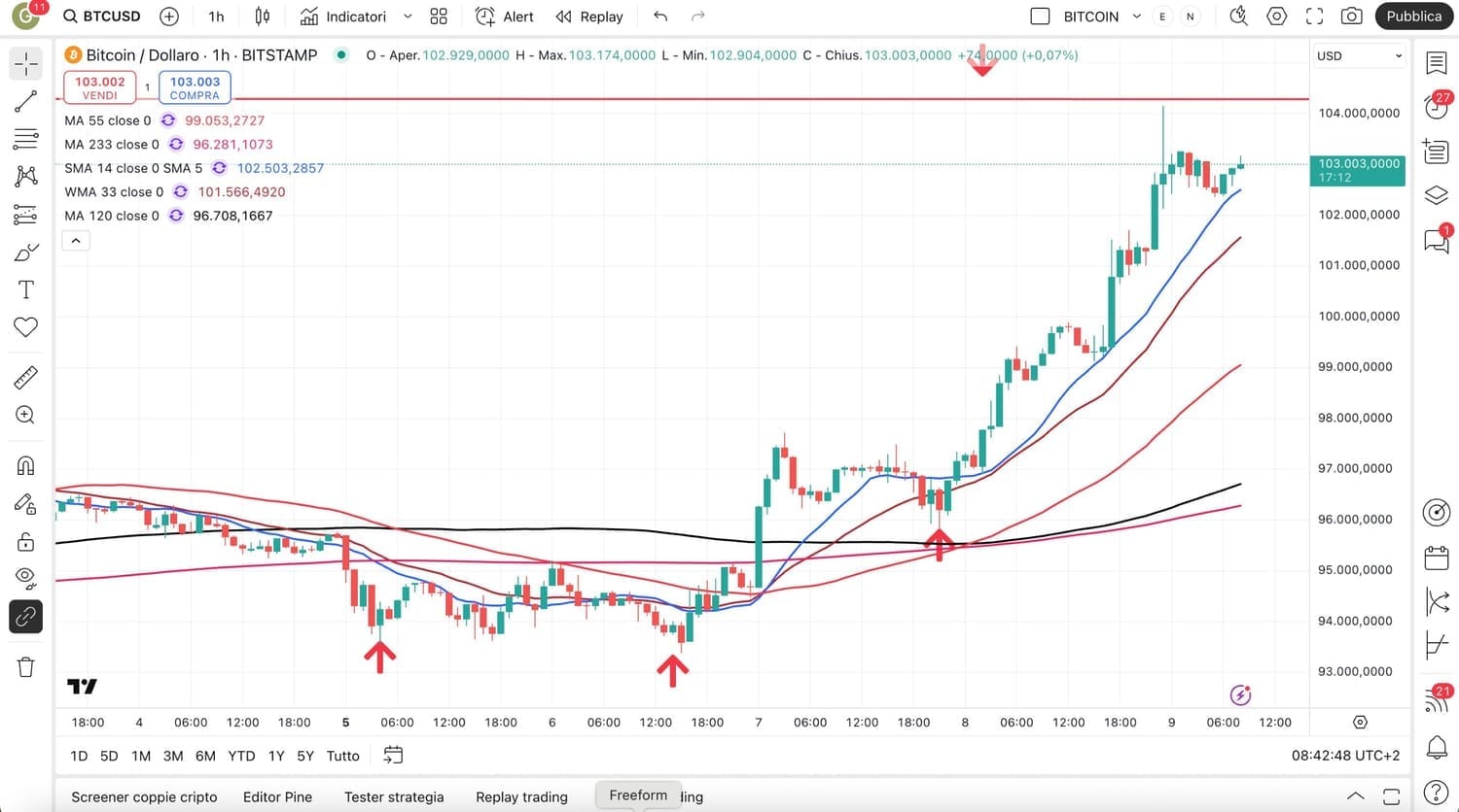 Ora ci troviamo appunto attorno ai 103.000 dollari.