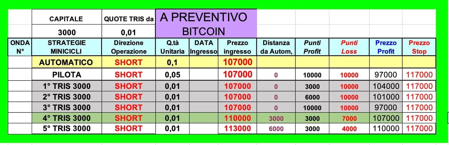 In pratica da 110000 a 107000 sarebbe scattato il take profit della quarta quota di TRIS (107000 era anche il punto di pareggio).