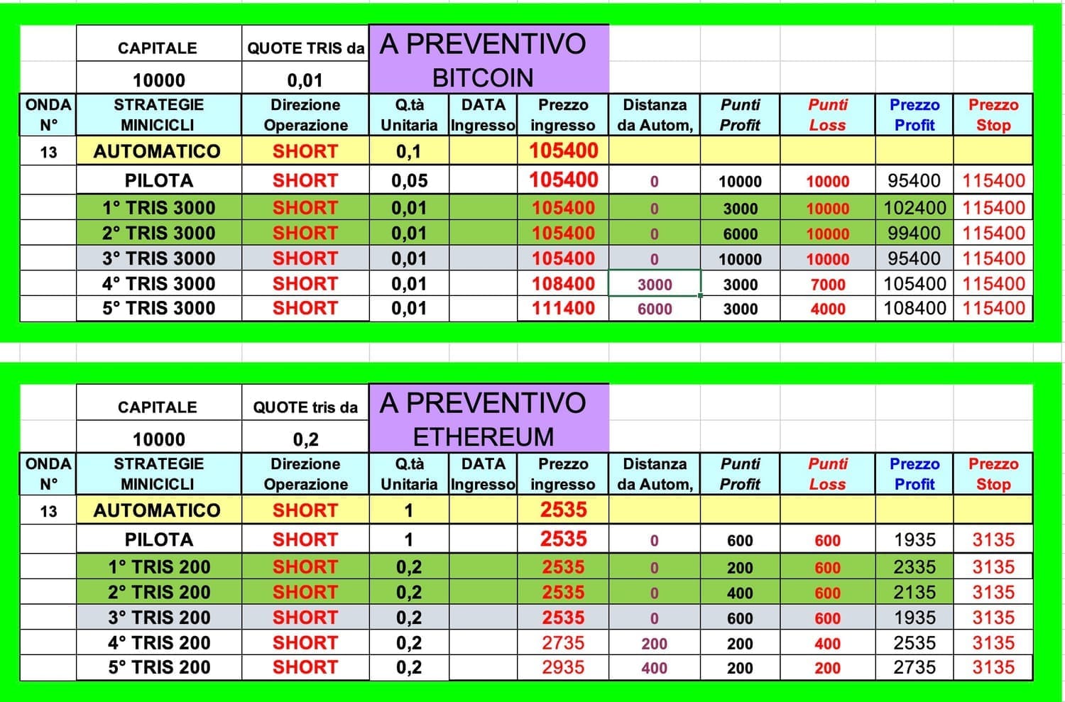 Lo abbiamo visto già Lunedì sulle criptovalute BITCOIN ed ETHEREUM con 2 quote su tre già scattate nella STRATEGIA TRIS.