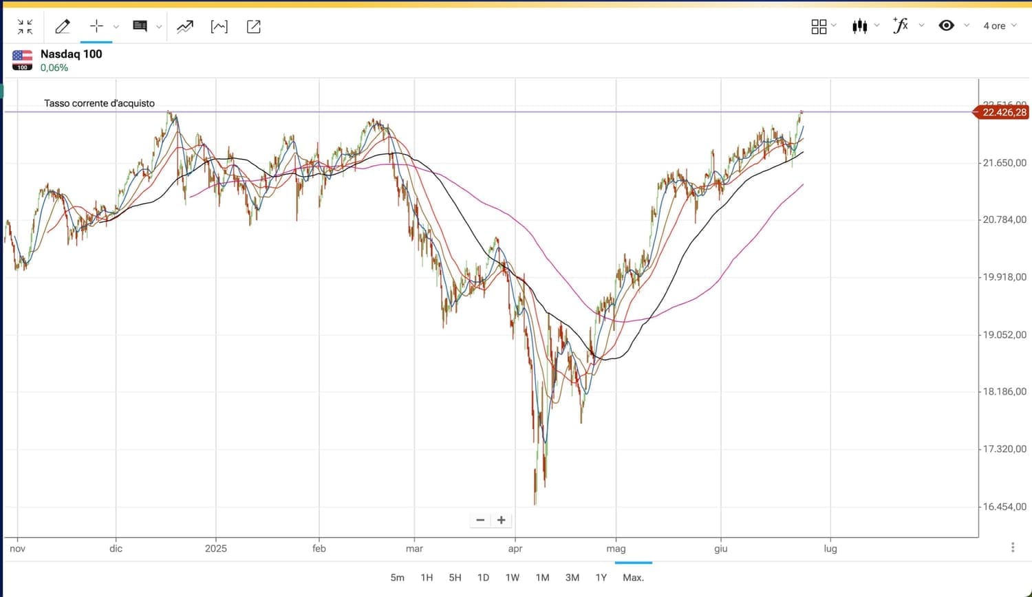 Lo vediamo perfettamente sul NASDAQ 100, che è tornato sopra i 22400 punti.