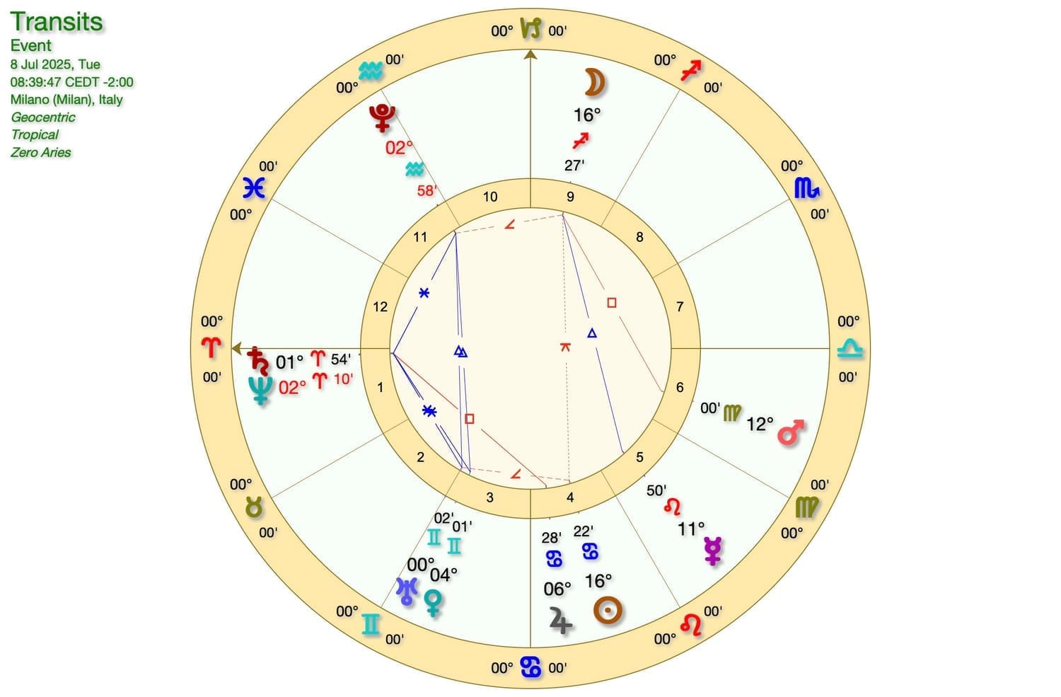Stamattina però la LUNA entrerà in CAPRICORNO e si troverà in QUADRATURA a SATURNO-NETTUNO in ARIETE e in OPPOSIZIONE. a GIOVE in CANCRO.