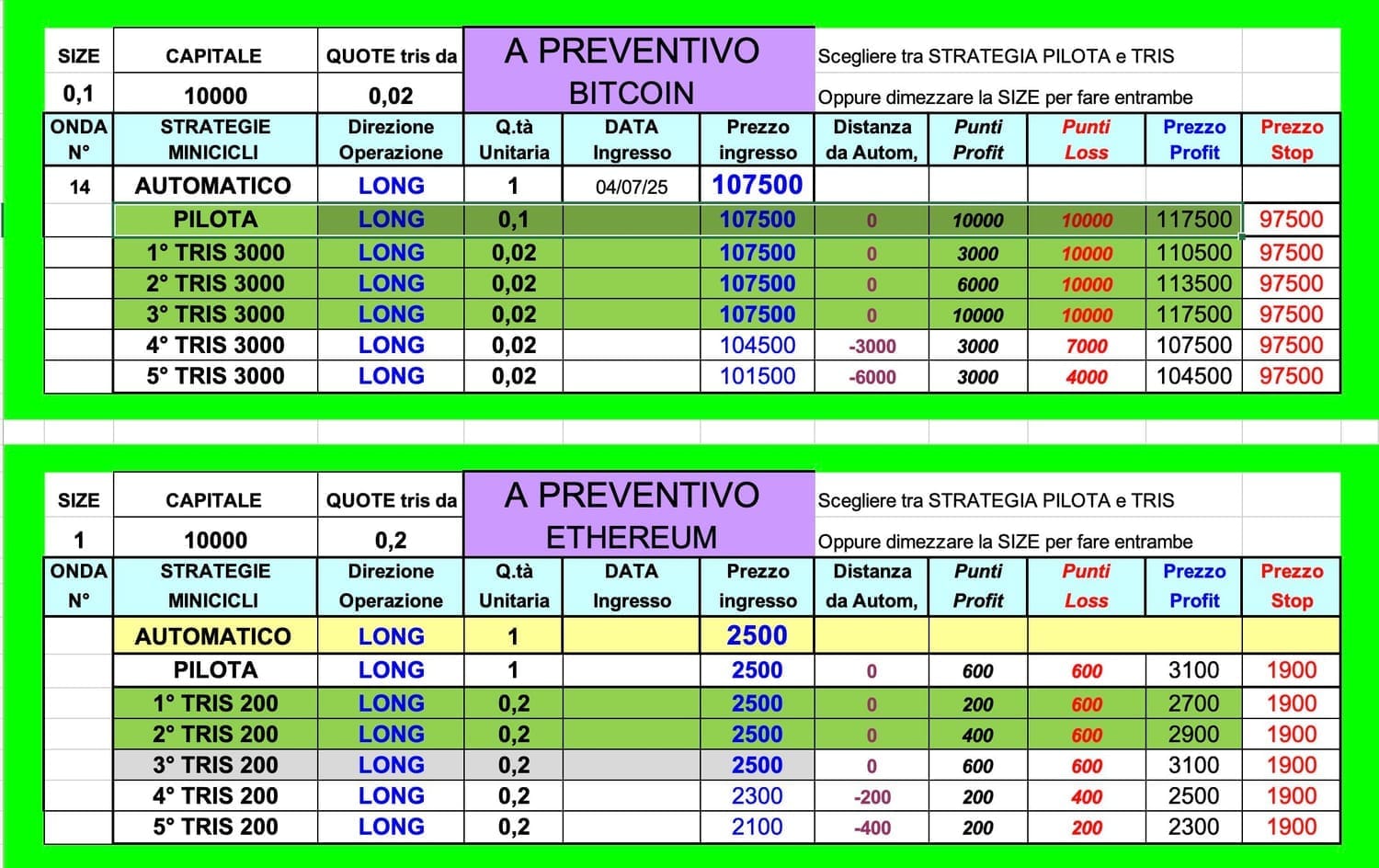✅ Con la salita sopra i 40640 di MIB future e 24430 di DAX future la GRIGLIA LONG automatica della STRATEGIA TRIS a 5 quote è stata completata.