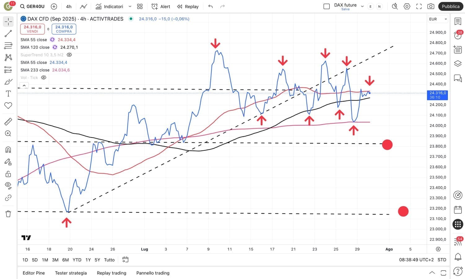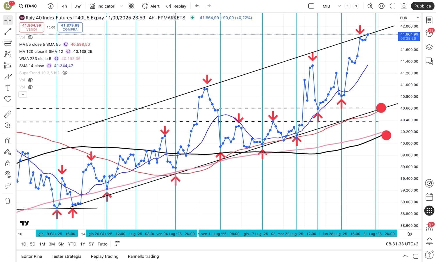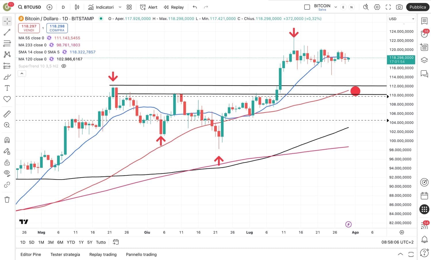 In tal caso, nel grafico si possono già intravedere dei possibili obiettivi (vedi cerchiolini rossi).