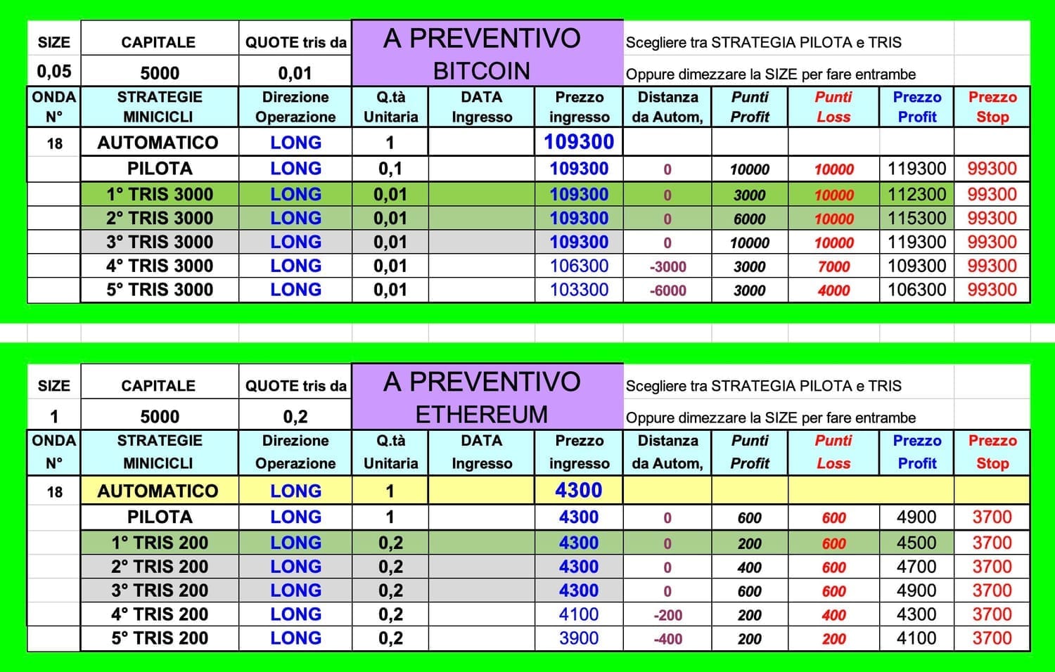 Su BITCOIN ed ETHEREUM al momento sono attive le STRATEGIE LONG.