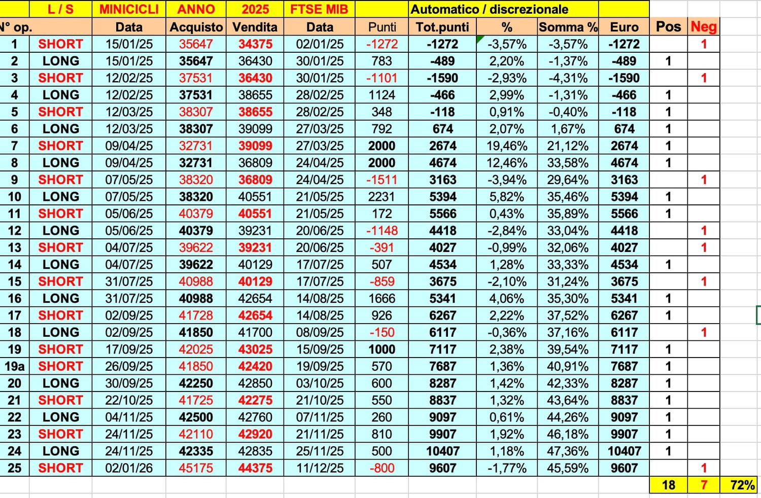 In totale sono oltre 1000 punti, che vanno a compensare la prima operazione dell’anno che era rimasta short dal 2025 per oltre 3 settimane e si è era chiusa a circa -800 punti.
