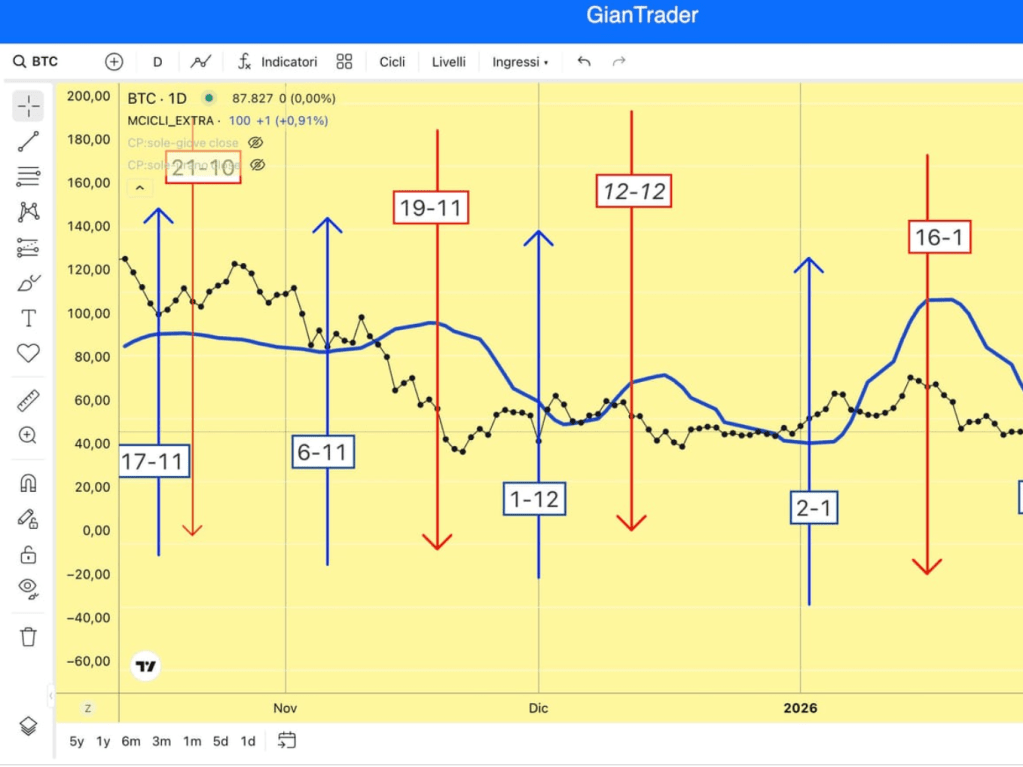 In merito a BITCOIN, come avevamo più volte analizzato all’interno delle COACHING del CORSO di ANALISTA astrologico planetario, c’era la possibilità di un ritorno sui MINIMI di Novembre, fatti sotto gli 82000 dollari.