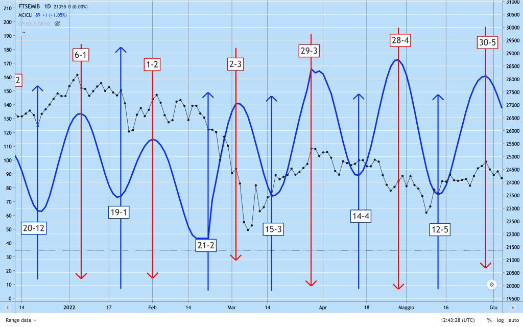 Ecco un grafico esemplificativo (correlazione Minicicli-indice Ftse Mib nel 2022)